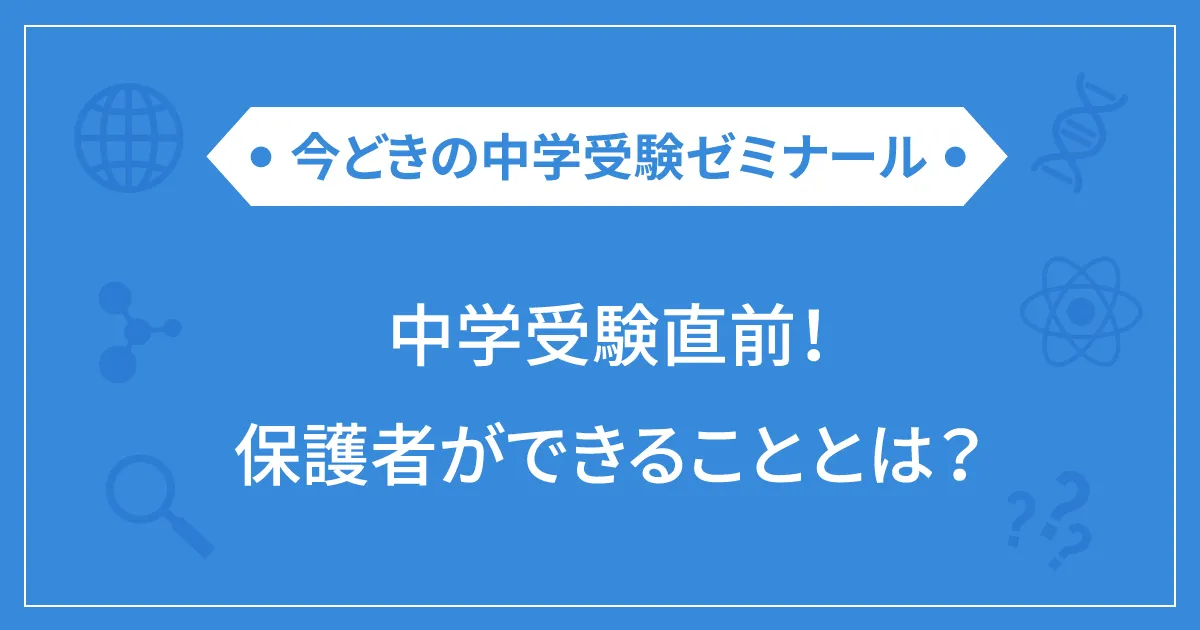 今回は、入試本番でお子さまが実力を発揮できるよう、直前期に保護者の方に気を付けていただきたいポイントをご紹介します。