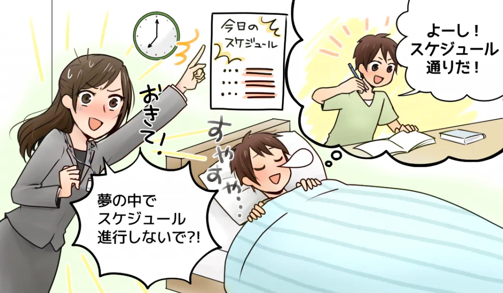 うーん、この計画だと毎日10時間勉強して、4時間しか睡眠をとらないことになっているけど、ちょっとムリがあるんじゃない?