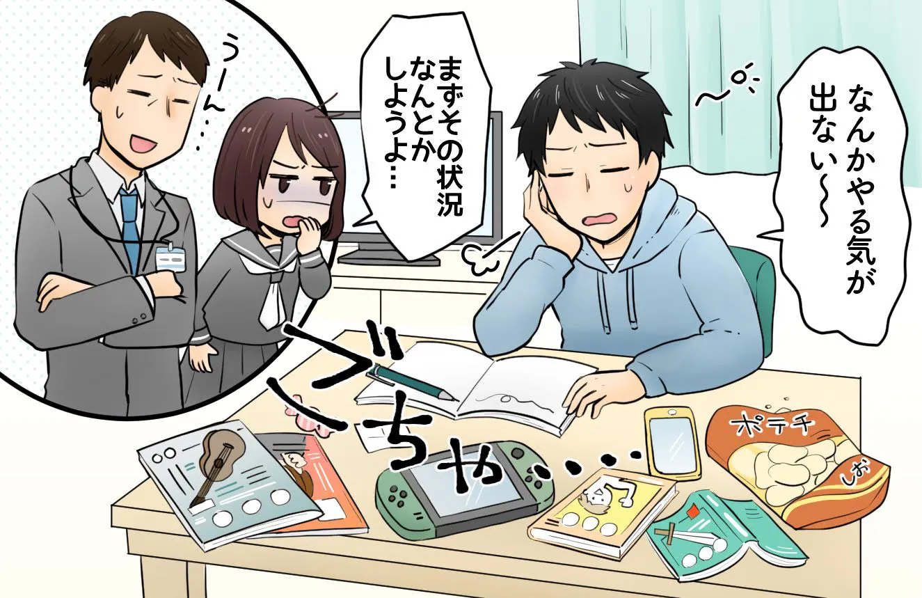 勉強にとりかかることが苦手な人は、結果的に勉強しないで机を離れてしまったり、勉強に集中する時間がとても少なかったりという状況に陥りがちです。机に向かったときには「勉強しよう!」と思っていたのに、いつの間にか時間だけ経って実はほとんど勉強ができていなかった...。なんて経験がある人が多いのではないでしょうか?