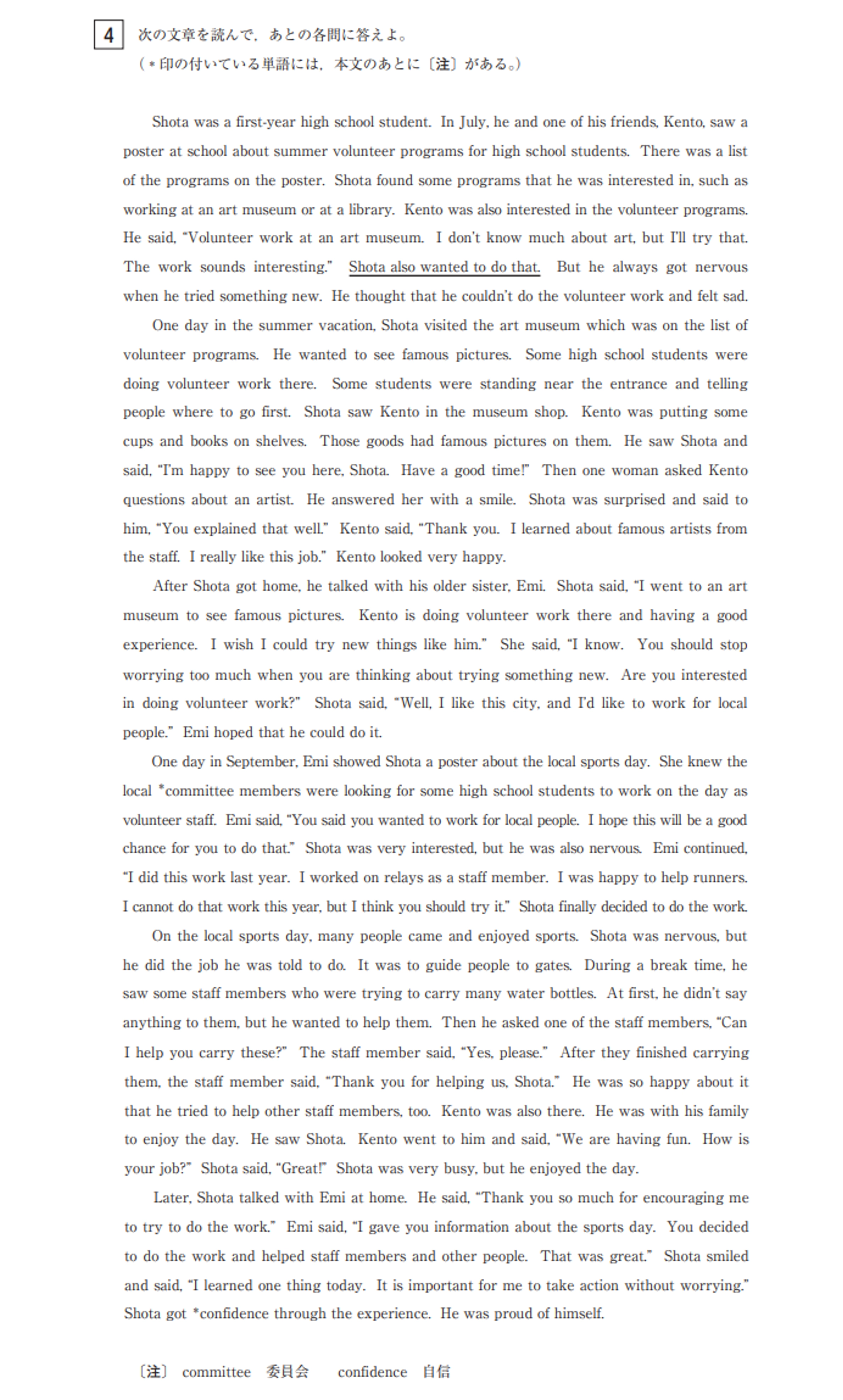 次は英語の入試問題を見てみましょう。現在の高校入試では、語数の多い長文の読解問題が多く出題されており、公立入試も例外ではありません。 例として東京都の読解問題を見てみましょう。
