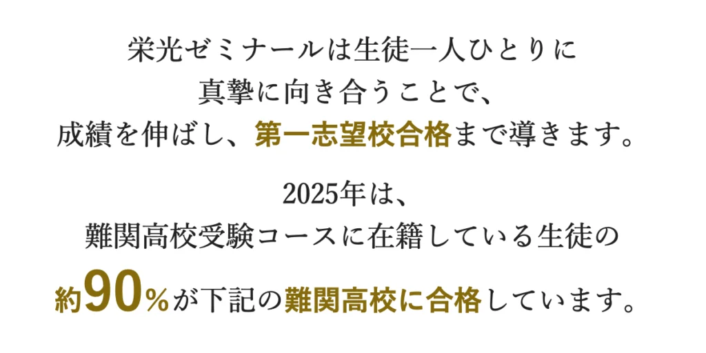 難関高校に合格するためには、学力の向上と充実した進路指導、この両輪が必要です。栄光ゼミナールの難関高校受験コースのポイントについてご紹介します。