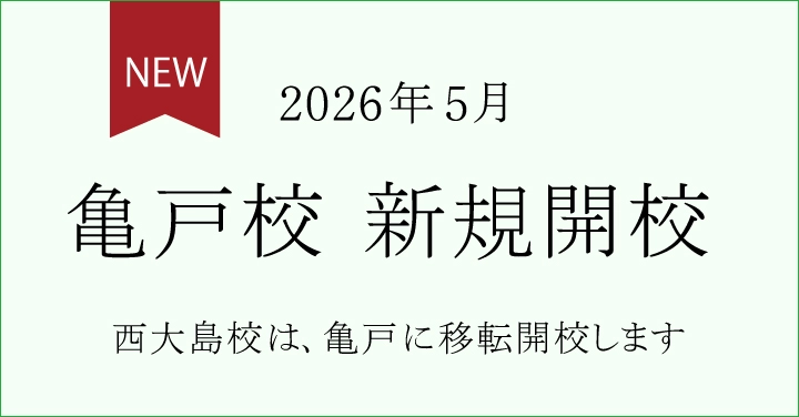 移転に伴い、教室名を西大島校から亀戸校へと変更し、引き続き指導をしてまいります。