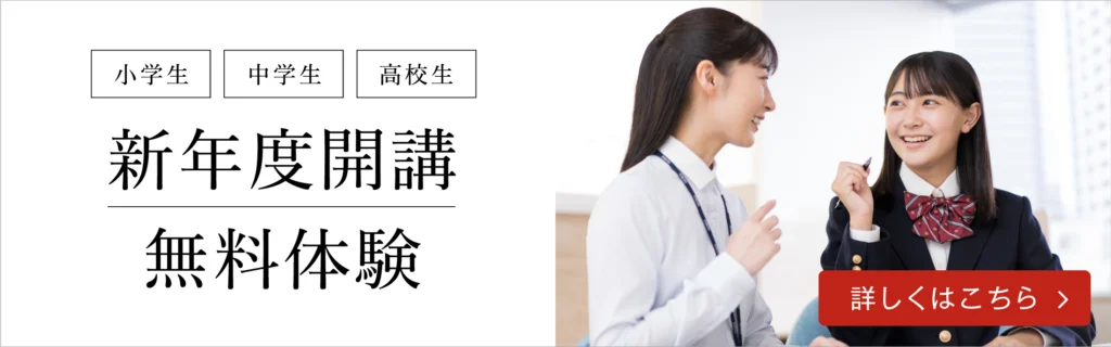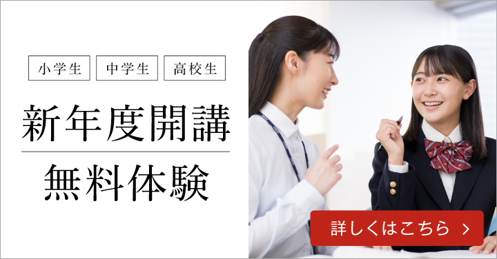 ※栄光の授業をはじめて受講される方が対象です。※ご希望の場合は教材をご購入いただくことも可能です。※高校生は「大学受験ナビオ」にご案内する場合がございます。