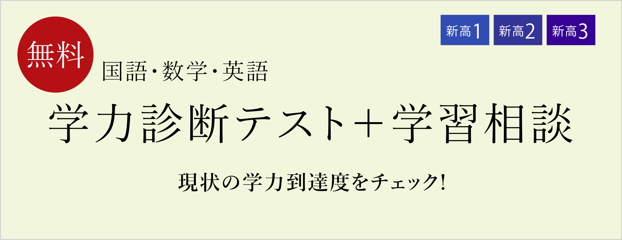3教科(英語・数学・国語)のテストを実施します。既習範囲から重要ポイントを厳選して出題するので、同学年の中で自分の位置づけや、教科ごとの得意分野・苦手領域がわかります。結果をもとに、大学受験に向けての今後の学習の進め方や課題の克服の仕方などをご提案いたします。