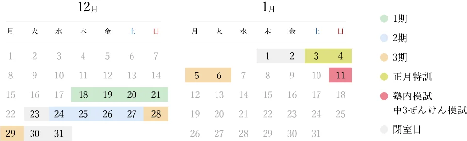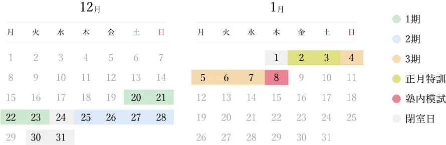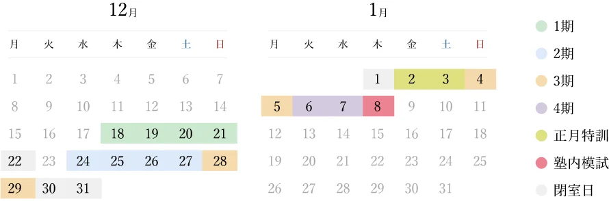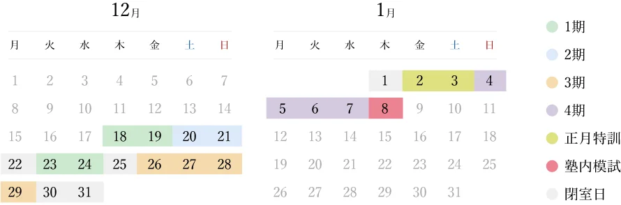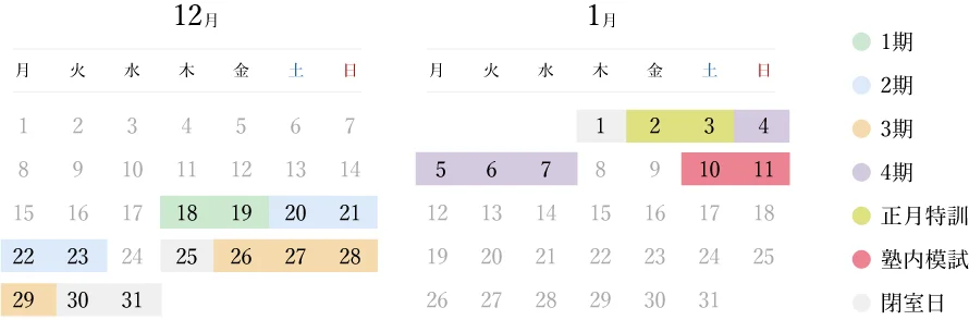 最新の時間割と料金を見る栄光の冬期講習は、1教科4日間から学べます。